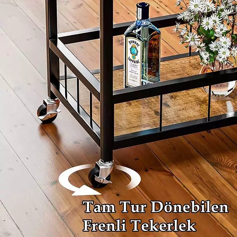 Dayanıklı ve Estetik Tasarım: Toz boyalı metal çerçevesi, bu servis arabasına uzun ömürlü dayanıklılık sağlar. Lüks ve göz alıcı görünümü, her mekanda mükemmel bir uyum sağlar.